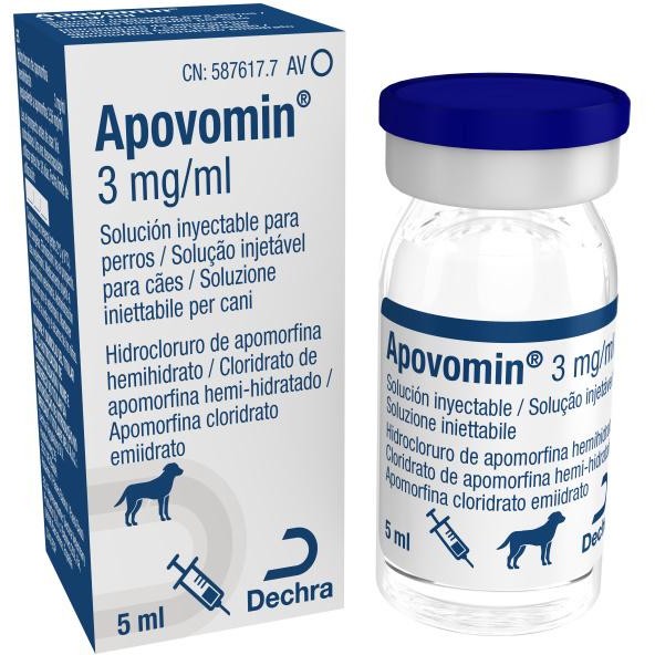 0,05-0,1 mg de hidrocloruro de apomorfina hemihidrato por kg de peso corporal (aproximadamente 0,02-0,03 ml del medicamento veterinario por kg de peso corporal).