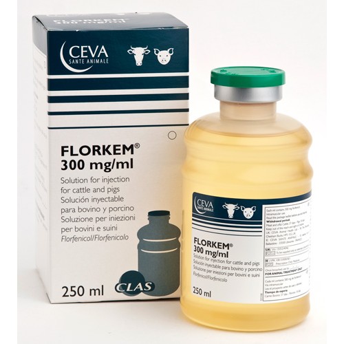 Porcino: 15 mg de florfenicol por kg p.v., es decir, 1 ml de solución por 20 kg p.v., dos veces con un