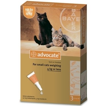 Gatos: La dosis mínima recomendada es de 0,1 ml de Advocate para Gatos/kg.