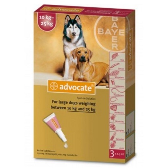 Perros: La dosis mínima recomendada es de 0,1 ml de Advocate para Perros/kg. Debe aplicarse todo el contenido de la pipeta.