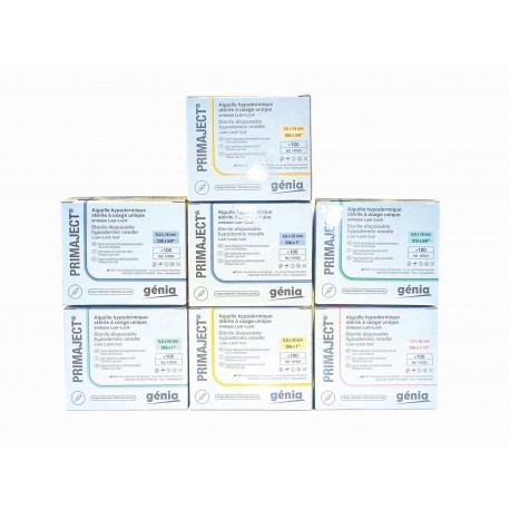 Agujas hipodérmicas estériles de un solo uso en acero inoxidable de calidad estándar.