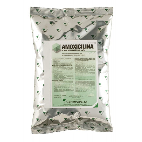 AMOXICILINA GLOBAL VET HEALTH 500 MG/G POLVO PARA ADMINISTRACIÓN EN AGUA DE BEBIDA PARA POLLOS, PAVOS, PATOS Y PORCINO