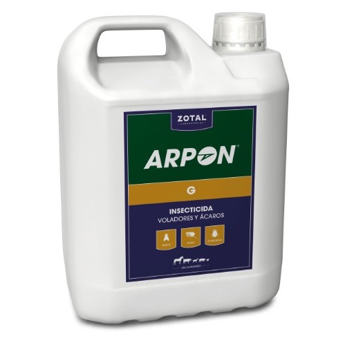 Se emplea diluido en agua al 0,5-1 % (equivalente a diluir 50-100 ml de ARPON® G por cada 10 litros de agua). Pulverizar en paredes, techos, suelos, ventanas etc., a razón de 5 litros de la emulsión preparada para su uso, por cada 100 m2 de superficie para superficies lisas y 10 litros de emulsión preparada para su uso en superficies porosas.
