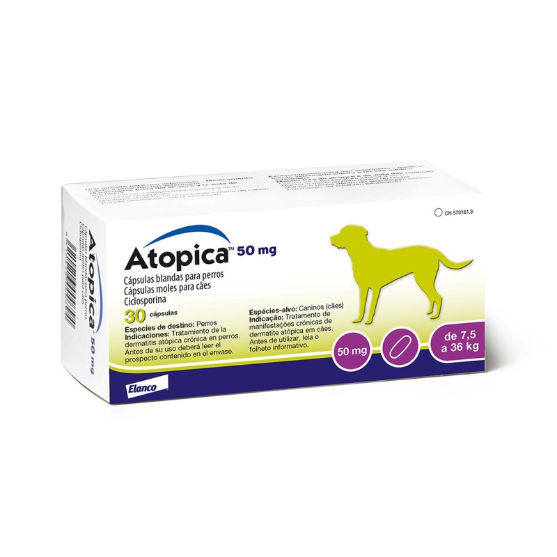 Atopica® 50 mg: Perros de 7,5 a 36 kg.