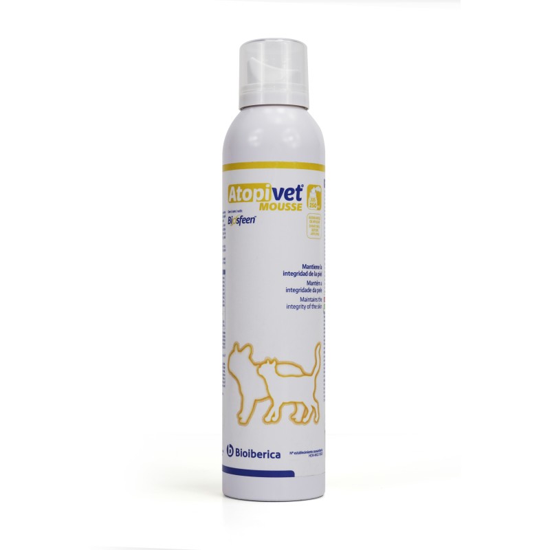 ATOPIVET® Mousse es un producto de higiene para perros y gatos que contribuye a mantener la integridad de la piel sana, hidratando y nutriendo la piel de las mascotas.