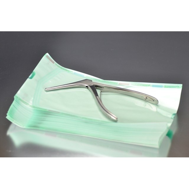 Sobres compuestos por una cara de papel blanco y otra de plástico transparente. Esterilización tanto por vapor como por gas. Con indicadores de vapor, O.E. y formaldeido