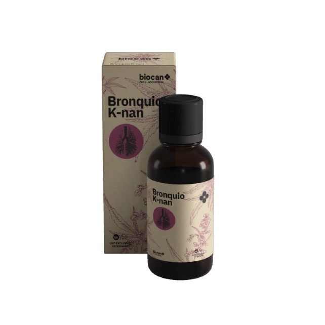 Bronquio K-nan es un suplemento nutricional líquido para perros, gatos, conejos y cobayas a base de condroitín sulfato, aminoácidos, vitamina C, hialuronato sódico y extractos naturales.