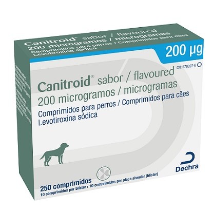 - Canitroid Sabor 200 µg: Levotiroxina sódica 200 µg.