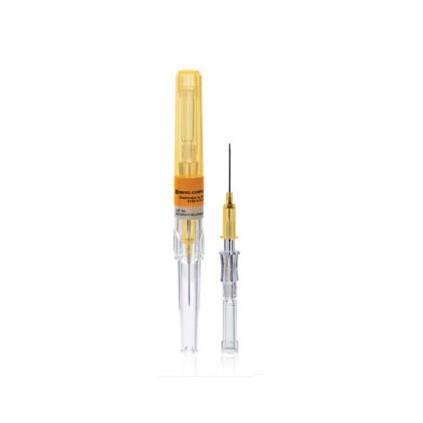 Catheter I.V. sin Alas 24G x 0,75" (0,7 x 19 mm.).Color Amarillo Catéter corto, flexible con conexión Luer-Lock y radiopaco , en cuyo interior contiene una aguja, que actúa como guía interna permitiendo al catéter introducirse preferiblemente en un vaso sanguíneo o cavidad del organismo. El grosor del catéter aumenta a medida que su numeración de calibre disminuye. El color de la conexión es diferente según el calibre del catéter. Indicación: En abordaje venoso superficial para la obtención de una vía venosa periférica. Se utilizan habitualmente para la administración de sueroterapia y medicación intravenosa.