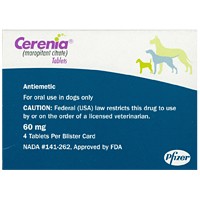 Perros: Prevención de las náuseas inducidas por quimioterapia; prevención del vómito inducido por mareo en el viaje; prevención y tratamiento del vómito, en combinación con Cerenia Solución Inyectable y con otras medidas complementarias.