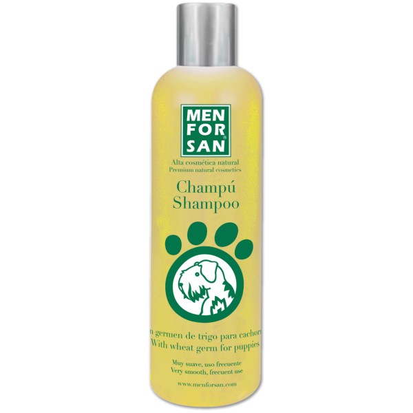 Champú de máxima calidad que no irrita los ojos ni las mucosas. El Gérmen de Trigo incluido en su composición aporta gran cantidad de nutrientes que contribuyen a mantener y recuperar la elasticidad del pelaje. Es rico en vitamina E, B1, B2, B6, proteínas y acido fólico y además tiene fuertes propiedades antioxidantes que ayudan a estimular el crecimiento del pelaje permitiendo una apariencia suave, hidratando y evitando la resequedad. Recomendado por la suavidad de sus componentes para su uso frecuente en cachorros.