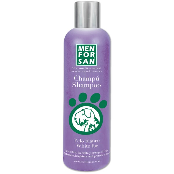 Champú de máxima calidad para perros de colores blancos y tonos claros (Caniche, West Highland terrier, Sky Terrier). Este champú quita las antiestéticas manchas grises y amarillas de los pelajes blancos intensificando y realzando el brillo y el color original de manera natural. El colágeno de su fórmula revitaliza, hidrata y recupera el aspecto sano y natural del pelaje. Apto para uso frecuente.