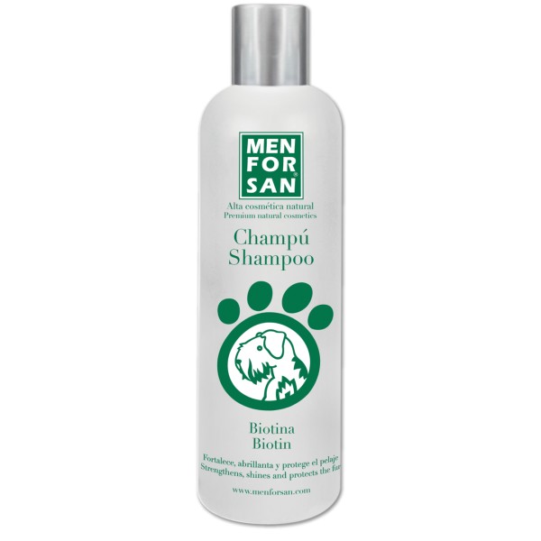 Champú de máxima calidad para perros sin colorantes ni perfume y con propiedades regenerativas del pelaje. La BIOTINA o vitamina B7 perteneciente al complejo de vitaminas del grupo B ayuda a fortalecer el pelaje fino y quebradizo y mejora la calidad de las estructuras de queratina regenerando y fortaleciendo las raíces capilares. Evita los problemas de piel seca abrillantándola y previniendo la dermatitis seborreica causante de la caída del pelaje. La utilización frecuente de este champú garantiza unos resultados espectaculares. Este champú se puede emplear frecuentemente y esta recomendado para todo tipo de razas de perros.