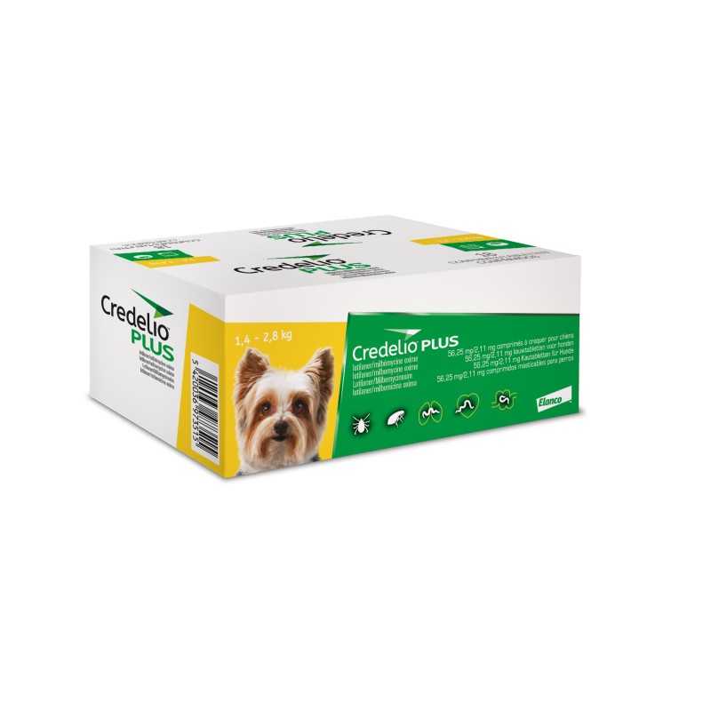 · Perros 1,4 a 2,8 kg: 1 comp Credelio Plus 56,25/2,11 mg