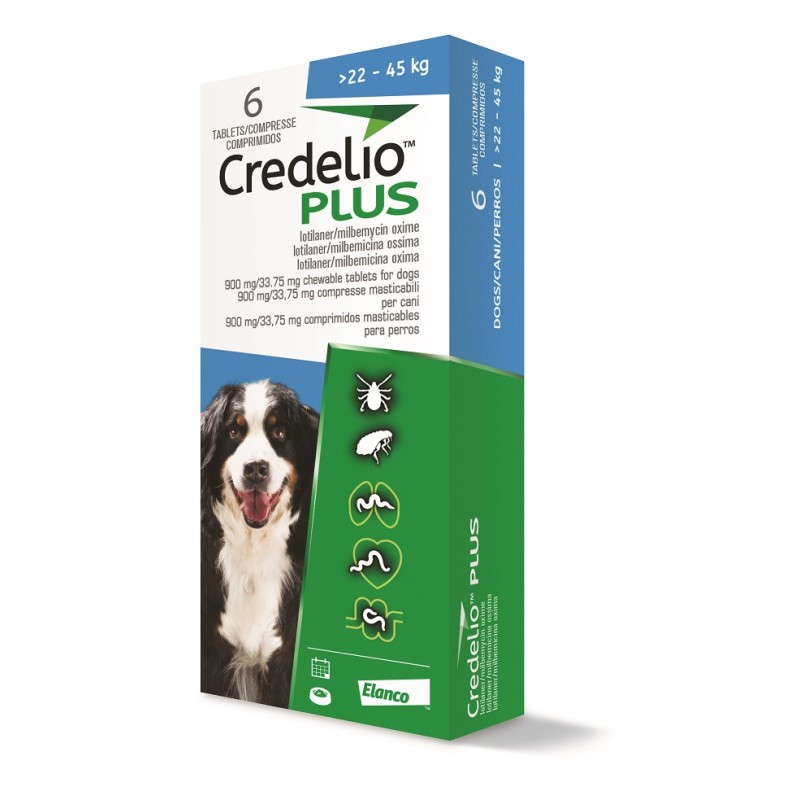 · Perros > 22 a 45 kg: 1 comp Credelio Plus 900 /33,75 mg