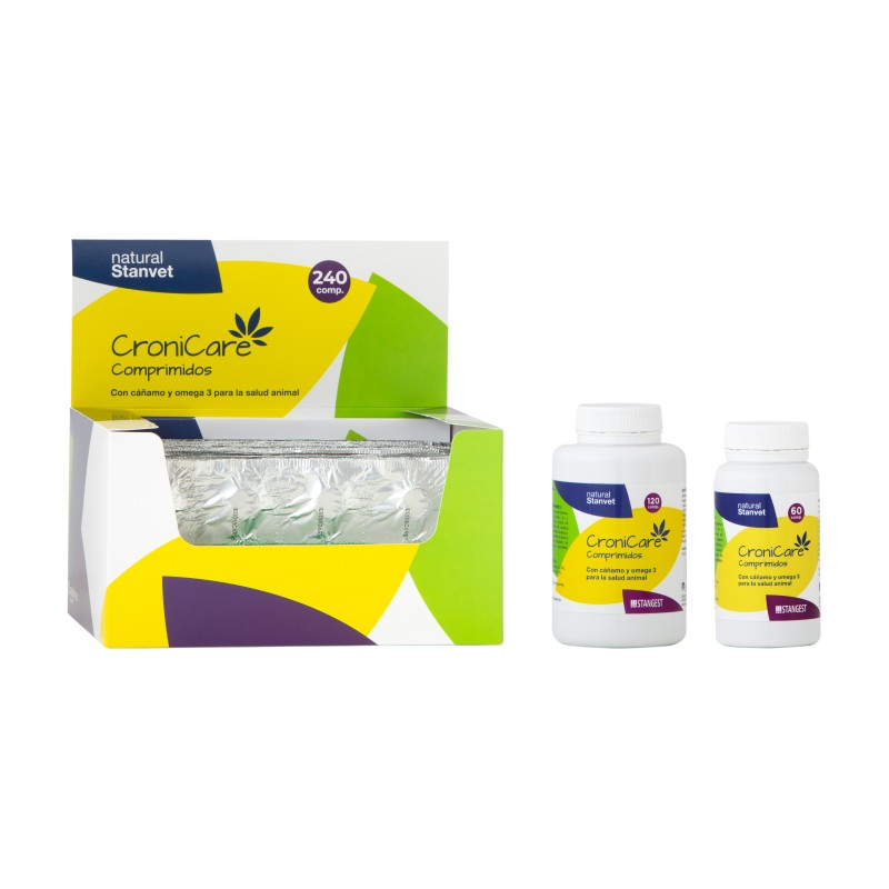CroniCare es un suplemento nutricional a base de cáñamo (Cannabis sativa), omega 3 y triglicéridos de cadena media (TCM). Es una fuente de nutrientes claves para la salud de perros y gatos, ideal como refuerzo en casos de mayor demanda nutricional o en animales séniors.