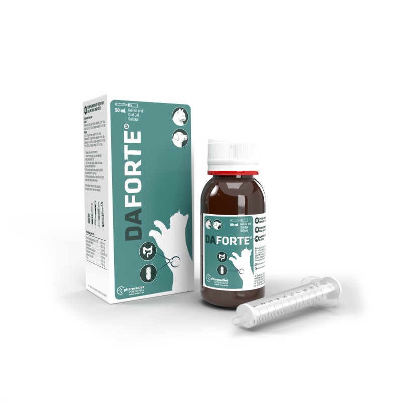 Daforte® es un alimento complementario a base de Attapulgita, Enterococcus faecium, Levadura de cerveza (Saccharomyces cerevisae) (MOS), Fructo-oligosacáridos (FOS), cloruro potásico, cloruro sódico y zinc, nutrientes que contribuyen al funcionamiento normal del tracto gastrointestinal.