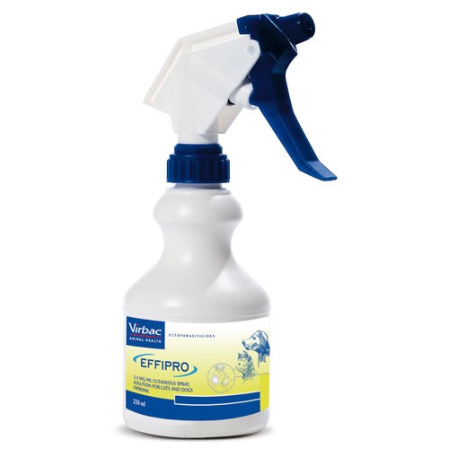 • Pulverizar el producto sobre la totalidad del cuerpo del animal a una distancia de