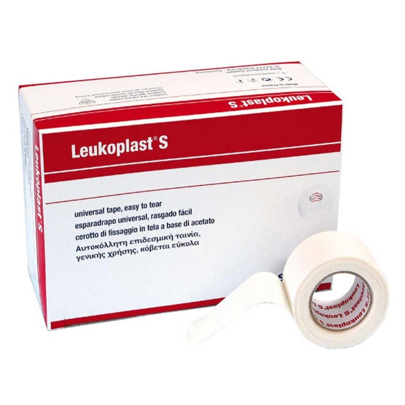 Esparadrapo clásico de tejido poroso de color blanco para la fijación de todo tipo de vendajes, sondas, cánulas, etc.,. Marca: Leukoplast. Fácilmente rasgable.