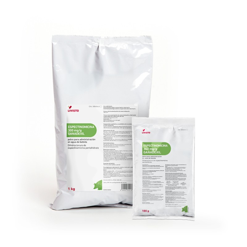 Cerdos: 8,3 g/10 litros de agua (equivalente a 250 mg de espectinomicina/litro de agua) durante 3 a