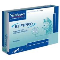 - Eliminación de garrapatas (Ixodes ricinus, Dermacentor variabilis, Rhipicephalus sanguineus). El producto tiene una eficacia acaricida en el gato de hasta 2 semanas frente a garrapatas (basado en datos experimentales).
