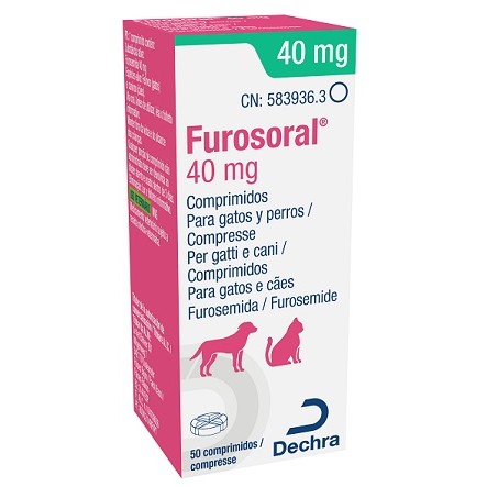 Datos farmacocinéticos: La furosemida se absorbe rápidamente sobre todo en el estómago y el intestino delgado alto. Las concentraciones máximas se midieron 1,1 horas después de la administración oral en gatos y 0,8 horas después en perros. Tras una dosis oral media de 5,2 mg/kg, la Cmax en gatos fue de 8,8 µg/ml. Tras una dosis oral media de 1,9 mg/kg, la Cmax en perros fue de 0,9 µg/ml. El metabolismo de la furosemida es muy limitado. Se elimina predominantemente por los riñones, mientras que el resto se excreta a través del tracto gastrointestinal. La semivida de eliminación fue de 3,7 horas en los gatos y de 2,4 horas en los perros.