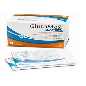 GlutaMax ® Forte se recomienda para apoyar la función hepática, especialmente en casos de insuficiencia hepática crónica. GlutaMax ® Forte puede utilizarse simultáneamente con tratamientos o dietas específicas, según prescripción del médico veterinario.