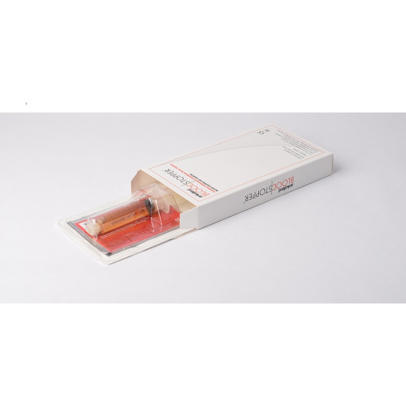Jeringa precargada con solución ABS® y tampón de celulosa oxidada bio absorbible
