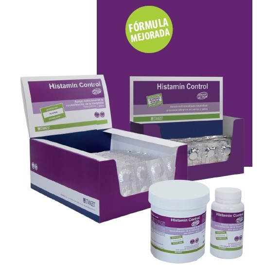 Histamín Control: 1 comprimido de 1.3 g por cada 10 kg de peso, 2 veces al día. A ser posible, fuera de las comidas.