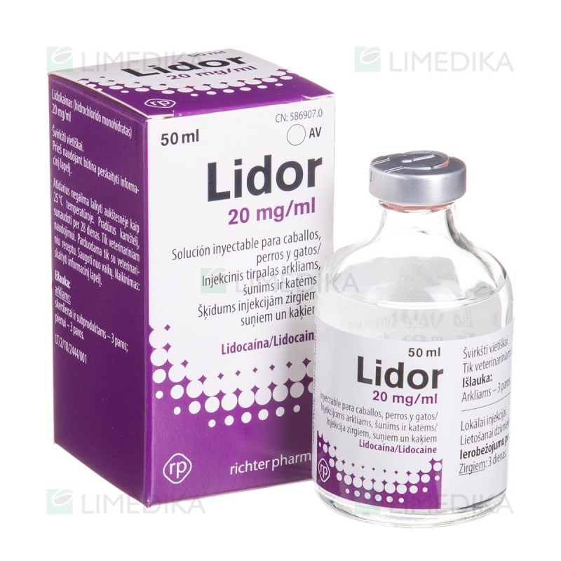 5. PROPIEDADES FARMACOLÓGICAS: Grupo farmacoterapéutico: Anestésico local, amidas, lidocaína. Código ATC vet: QN01BB02 5.1 Propiedades farmacodinámicas: La lidocaína posee actividad anestésica local mediante la inducción de bloqueo nervioso reversible. Es activa en todas las fibras nerviosas, comenzando con las fibras nerviosas neurovegetativas, luego las sensoriales y finalmente también las fibras motoras. El inicio y la duración del efecto varían según la técnica utilizada, la ubicación del nervio a insensibilizar en el caso de la anestesia perineural y la dosis administrada en el caso de la anestesia por infiltración. En general, el inicio del efecto varía de menos de 1 minuto (anestesia por contacto) a 10-15 minutos para algunos nervios y la duración del efecto puede alcanzar hasta 2 horas. 5.2 Datos farmacocinéticos: La lidocaína es fácilmente absorbida por las mucosas y la velocidad de absorción también depende de la vascularización del punto de inyección. La difusión de la lidocaína dentro de los tejidos es muy extensa dada su liposolubilidad. Su metabolismo, que tiene lugar principalmente en el hígado, es complejo y la eliminación se produce principalmente por vía renal en forma de sus metabolitos. Un aclaramiento hepático reducido de la lidocaína (debido a antagonistas microsómicos de la monooxigenasa, presión arterial baja o perfusión hepática reducida) puede causar concentraciones plasmáticas (tóxicas) aumentadas. La lidocaína es desalquilada e hidroxilada por las monooxigenasas e hidrolizada por las carboxilesterasas. Se identificaron como productos de degradación monoetilglicerinxilidida, glicinxilidida, 2,6-xilidina, 4-hidroxi-2,6-dimetilanilina, 3-hidroxi-lidocaína y 3-hidroxi-monoetilglicinxilidida. La sustancia madre y los metabolitos se excretan libremente, sulfatados o glucuronidados. 6. DATOS FARMACÉUTICOS: 6.1 Lista de excipientes: Propilparahidroxibenzoato de metilo (E218) Propilparahidroxibenzoato de propilo Cloruro de sodio Hidróxido de sodio (para ajuste de pH) Ácido clorhídrico concentrado (para ajuste de pH) Agua para preparaciones inyectable 6.2 Incompatibilidades principales: En ausencia de estudios de compatibilidad, este medicamento veterinario no debe mezclarse con otros medicamentos veterinarios. 6.3 Período de validez: Período de validez del medicamento veterinario acondicionado para su venta: 30 meses Período de validez después de abierto el envase primario: 28 días 6.4. Precauciones especiales de conservación: Después de abiero el envase primario, no conservar a temperatura superior a 25 °C. 6.5 Naturaleza y composición del envase primario: Vial de vidrio transparente tipo II (Ph. Eur) con tapón de goma de bromobutilo o tapón de bromobutilo con un revestimiento de polímero fluorado tipo I (Ph. Eur.) y cápsula de cierre de aluminio. Formatos: 50 ml, 100 ml, 250 ml, 5 x 50 ml, 5 x 100 ml Es posible que no se comercialicen todos los formatos. 6.6 Precauciones especiales para la eliminación del medicamento veterinario no utilizado o, en su caso, los residuos derivados de su uso: Todo medicamento veterinario no utilizado o los residuos derivados del mismo deberán eliminarse de conformidad con las normativas locales. 7. TITULAR DE LA AUTORIZACIÓN DE COMERCIALIZACIÓN Richter Pharma AG, Feldgasse 19, 4600 Wels, Austria 8. NÚMERO(S) DE LA AUTORIZACIÓN DE COMERCIALIZACIÓN 3623 ESP 9. FECHA DE LA PRIMERA AUTORIZACIÓN/RENOVACIÓN DE LA AUTORIZACIÓN Fecha de la primera autorización: 16 de febrero de 2018 10. FECHA DE LA REVISIÓN DEL TEXTO PROHIBICIÓN DE VENTA, DISPENSACIÓN Y/O USO: Condiciones de dispensación: Medicamento sujeto a prescripción veterinaria. Condiciones de administración: Administración exclusiva por el veterinario