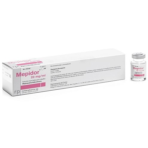 Mepidor 20 mg/ml solución inyectable para caballos.