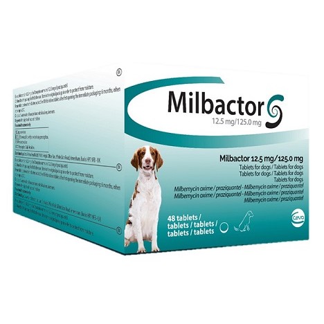 - Milbactor Comprimidos para Perros: Milbemicina oxima 12,5 mg; praziquantel 125 mg.