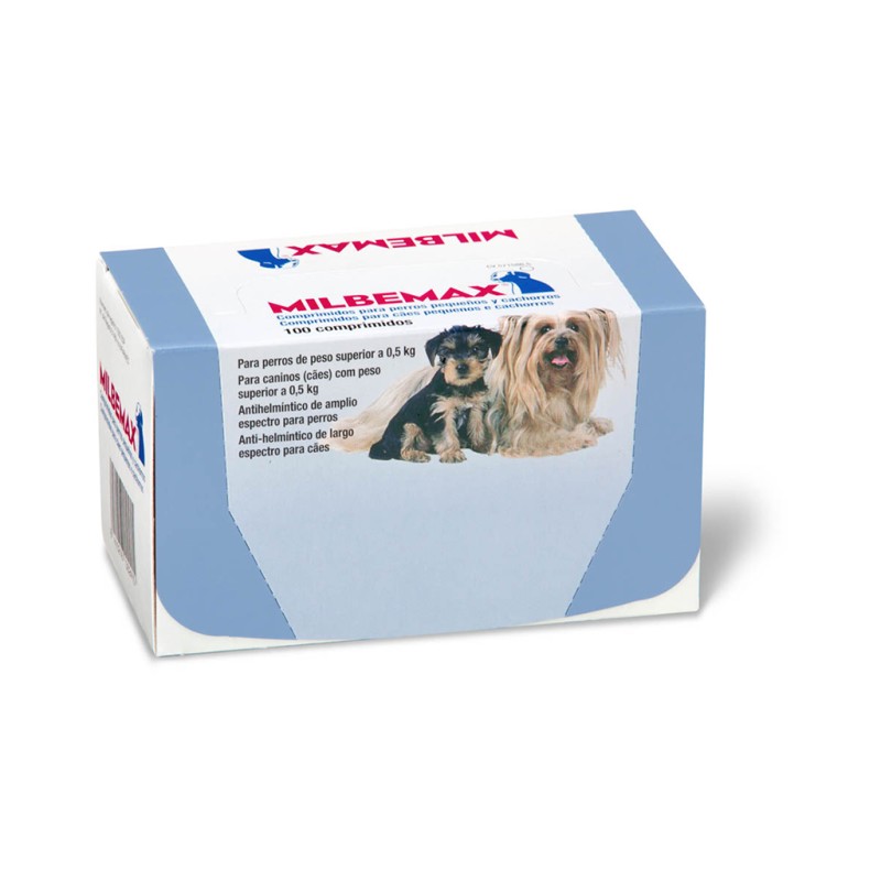 - Milbemax™ Comprimidos para Perros pequeños y Cachorros: Milbemicina oxima 2,5 mg; praziquantel 25 mg.