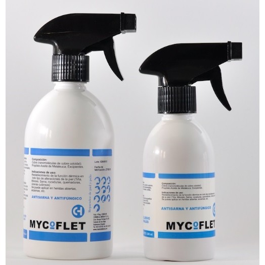 Mycoflex incluye nanomoléculas de cobre coloidal muy eficaces en todo tipo de micosis y sarna además tiene actividad antiséptica gracias a su contenido en tea tree oil (aceite del árbol de té). El extracto de propoleo protege los lugares susceptibles de patogenicidad y acelera la cicatrización.