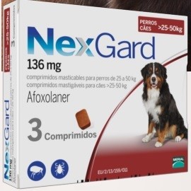 Perros (>25-50 kg de peso): 1 comprimido masticable NexGard 136 mg.