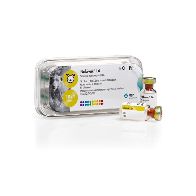 Para uso simultáneo: 1 dosis de una vacuna Nobivac que contenga componentes de virus de moquillo, adenovirus canino tipo 2, parvovirus canino y/o virus de paraifluenza canina debe ser reconstituida con 1 dosis (1 ml) de Nobivac L4. Las vacunas mezcladas deben estar a temperatura ambiente (15 - 25 °C) antes de ser administradas por inyección subcutánea.