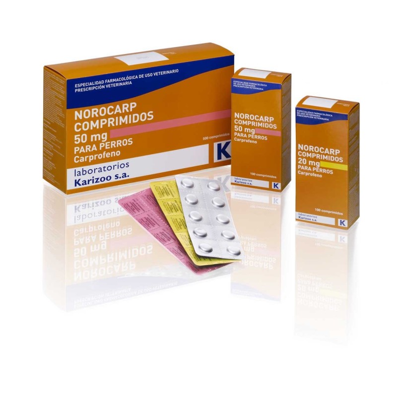 Carprofeno 50 mg, alcohol bencílico 10 mg, sodio formaldehído sulfoxilato 2,5 mg.