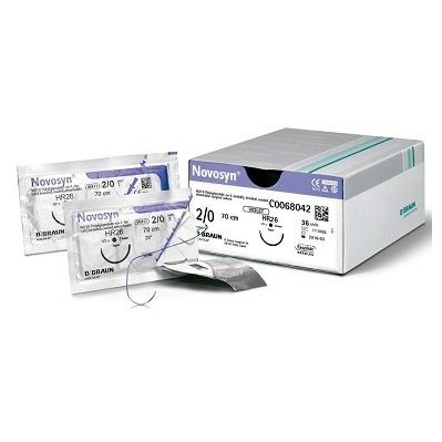 Novosyn® es una sutura sintética absorbible a medio plazo,de 90/10 Poli (glicolido-co-L-lactido), multifilar trenzada e impregnada. Está disponible en color violeta e incoloro.