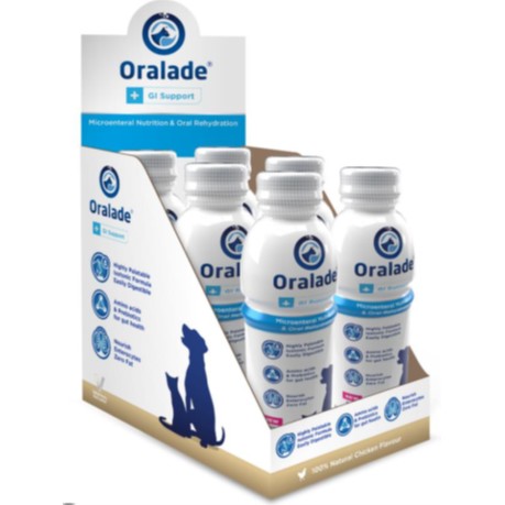 Oralade® es una bebida isotónica para perros y gatos indicada para ayudar a la disminución de los trastornos agudos de malabsorción intestinal. Utilizar en períodos de recuperación tras problemas gastrointestinales y de convalecencia. Contiene una cantidad equilibrada de electrolitos como sodio, potasio y azúcares de fácil digestión.