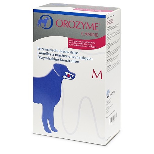 Perros: Utilizar las tiras dentífricas enzimáticas masticables Orozyme solo en mascotas que tienen dientes firmes y sanos.