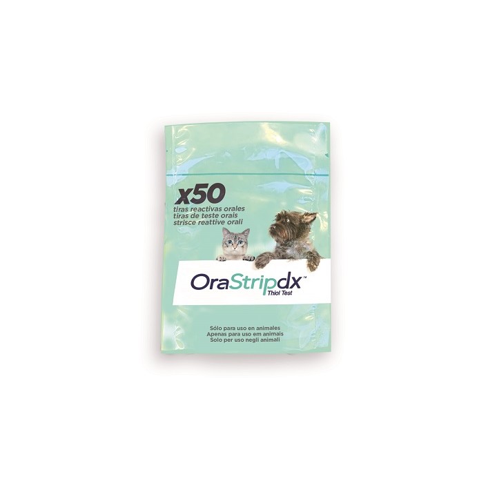 OraStripdx es una tira de diagnóstico que estima los niveles de tioles disueltos en la saliva. En exploraciones bajo anestesia: el 99% de los casos positivos en el test de tioles tenían enfermedad periodontal tras el examen de la boca completa bajo anestesia.