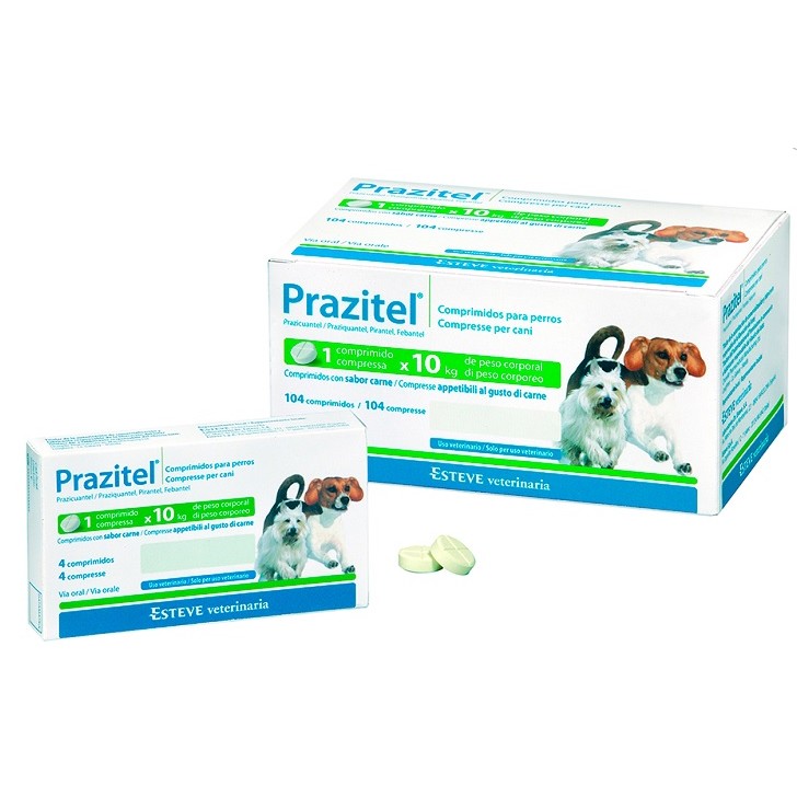 Perros: Las dosis recomendadas son: Febantel 15 mg/kg de peso corporal, pirantel 5 mg/kg (el equivalente a 14,4 mg de embonato de pirantel) y prazicuantel 5 mg/kg. Equivalen a 1 comprimido de Prazitel por cada 10 kg de peso corporal.