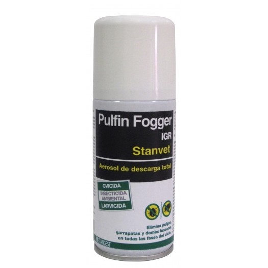 El contenido de este aerosol permite tratar hasta 80 m2 de superficie. Cerrar ventanas, puertas exteriores y apagar los sistemas de ventilación o aire acondicionado. Apagar todas las llamas y desconectar los aparatos eléctricos y de combustión. Dejar alfombras, muebles tapizados y el colchón de los animales (escondites habituales de las pulgas) en su lugar, para ser tratados. Colocar el aerosol sobre una mesa o una silla en el centro del área a tratar.