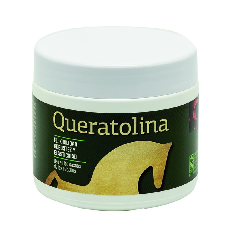 Indicaciones:: Debido a su equilibrada composición QUERATOLINA PLUS está indicada para favorecer el correcto crecimiento y mejorar la calidad de los cascos, ejerciendo una considerable influencia sobre el bienestar general del caballo. QUERATOLINA PLUS mantiene los cascos en un correcto estado, proporcionando a la sustancia córnea la humedad necesaria para que se reblandezca y adquiera la flexibilidad imprescindible para el correcto funcionamiento del pie, consiguiendo que el casco recupere los caracteres de robustez, flexibilidad y elasticidad que le son inherentes, en caso de cascos vidriosos y esponjosos y durante la recuperación de enfermedades de la ranilla y lesiones de palma y tapa.