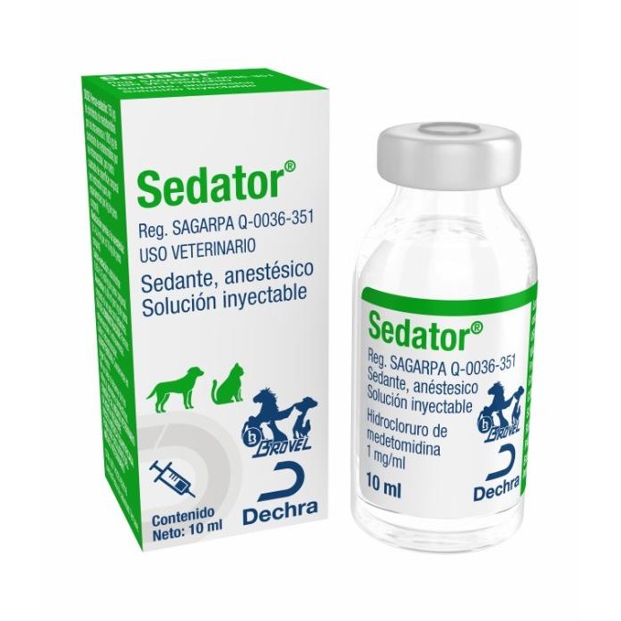 Para sedación: Sedator debe administrarse en dosis de 750 µg de clorhidrato de medetomidina por vía intravenosa o 1000 µg de clorhidrato de medetomidina por vía intramuscular por metro cuadrado de superficie corporal. El efecto máximo se obtiene a los 15-20 minutos. El efecto clínico depende de la dosis y dura entre 30 y 180 minutos.