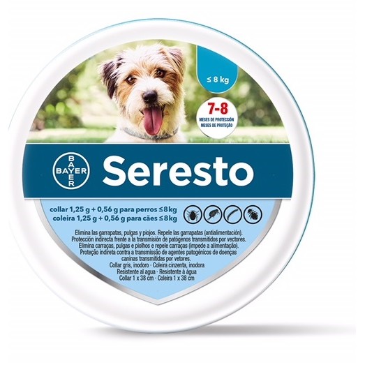 - Perros =8 kg: 1 collar de Seresto para Perros =8 kg.