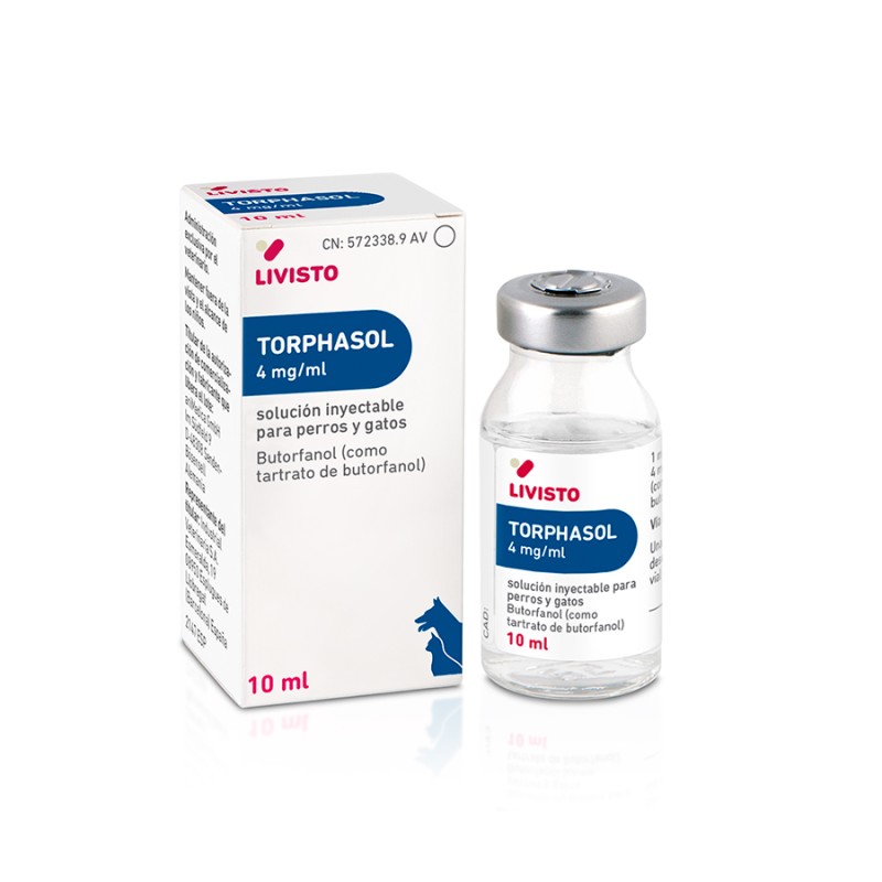 Gatos: Analgesia, administracion intravenosa de butorfanol a 0,1-0,2 mg/kg de peso corporal (equivalente a 0,025-0,05 ml/kg peso corporal de TorphasolR).