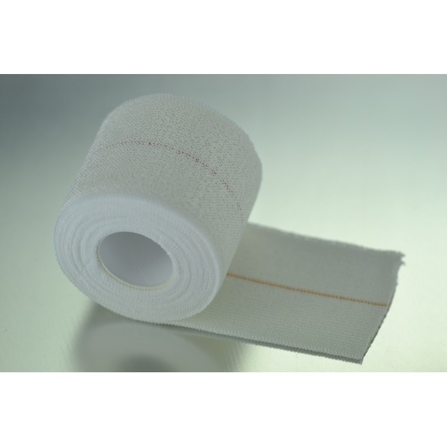 Definición: Venda de algodón elástica con adhesivo poroso, libre de latex. No debe aplicarse directamente sobre la piel, ya que puede dar problemas alérgicos o irritativos cuando se mantienen durante un tiempo excesivo. En estos casos hay que colocar un vendaje de protección antes de colocar esta venda. Pre s e n t a una elasticidad longitudinal entre el 60 y 70% y también las encontramos con elasticidad en las dos direcciones con un aumento longitudinal del 60% y transversal del 30%. Es fácil excederse en la presión por lo que las primeras horas debe extremarse la vigilancia. Se presenta en diferentes tamaños según las necesidades.