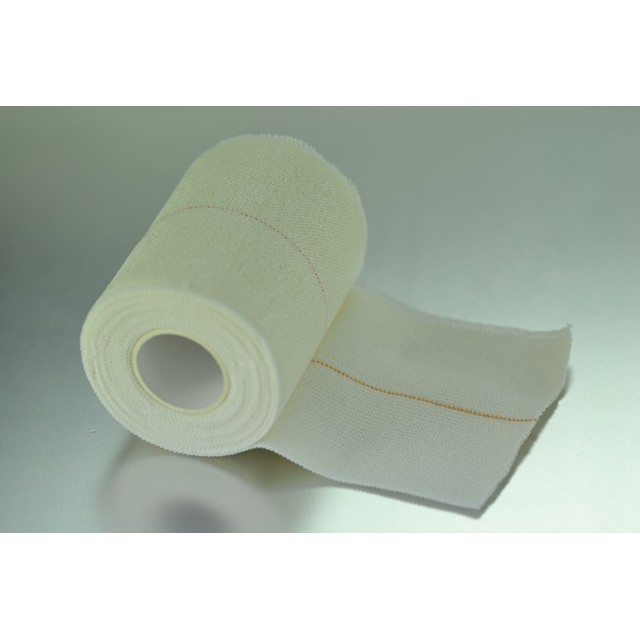 Definición: Venda de algodón elástica con adhesivo poroso, libre de latex. No debe aplicarse directamente sobre la piel, ya que puede dar problemas alérgicos o irritativos cuando se mantienen durante un tiempo excesivo. En estos casos hay que colocar un vendaje de protección antes de colocar esta venda. Pre s e n t a una elasticidad longitudinal entre el 60 y 70% y también las encontramos con elasticidad en las dos direcciones con un aumento longitudinal del 60% y transversal del 30%. Es fácil excederse en la presión por lo que las primeras horas debe extremarse la vigilancia. Se presenta en diferentes tamaños según las necesidades.