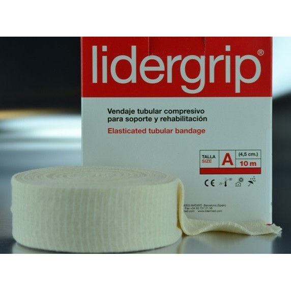 Vendaje tubular Lidergrip en tejido elástico compresivo para soporte y rehabilitación, que por sus especiales características, nos permite ejercer una presión uniforme y prolongada sobre la parte del cuerpo en la que se aplica.